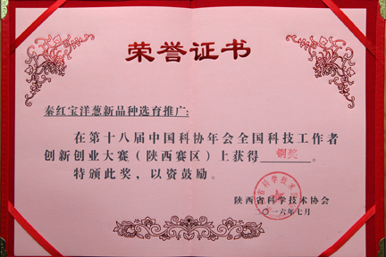 热烈庆祝秦红宝洋葱在第十八届中国科技大赛中荣获铜奖。
