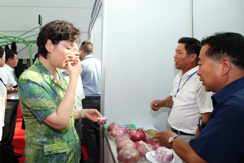 陕西省科学技术协会党组书记,陕西省科学技术协会常务副主席、陕西省政协常委、科技委副主任呼燕女士在品尝秦红宝洋葱。