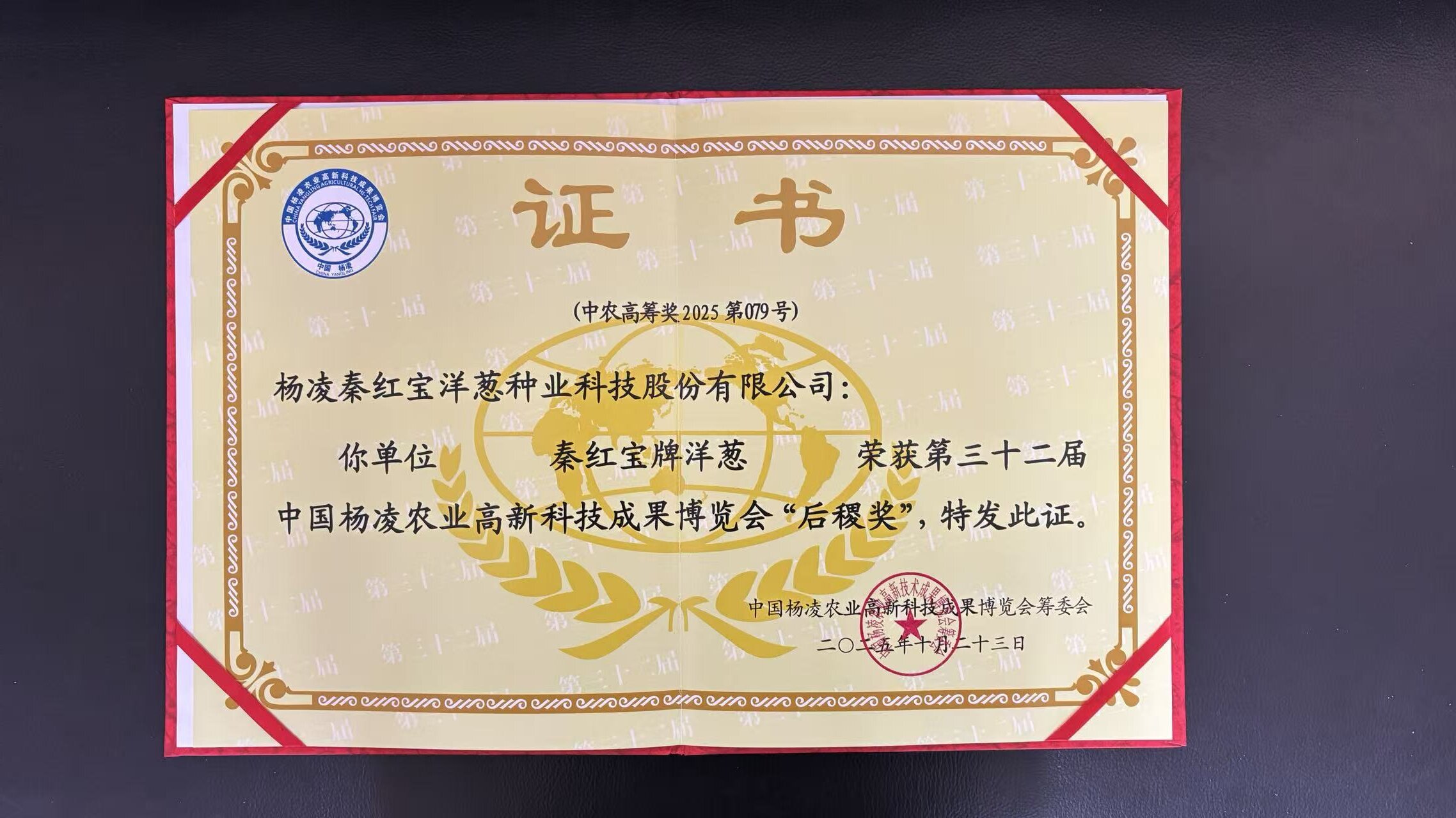 第32届中国杨凌高新科技成果博览会“后稷奖”证书