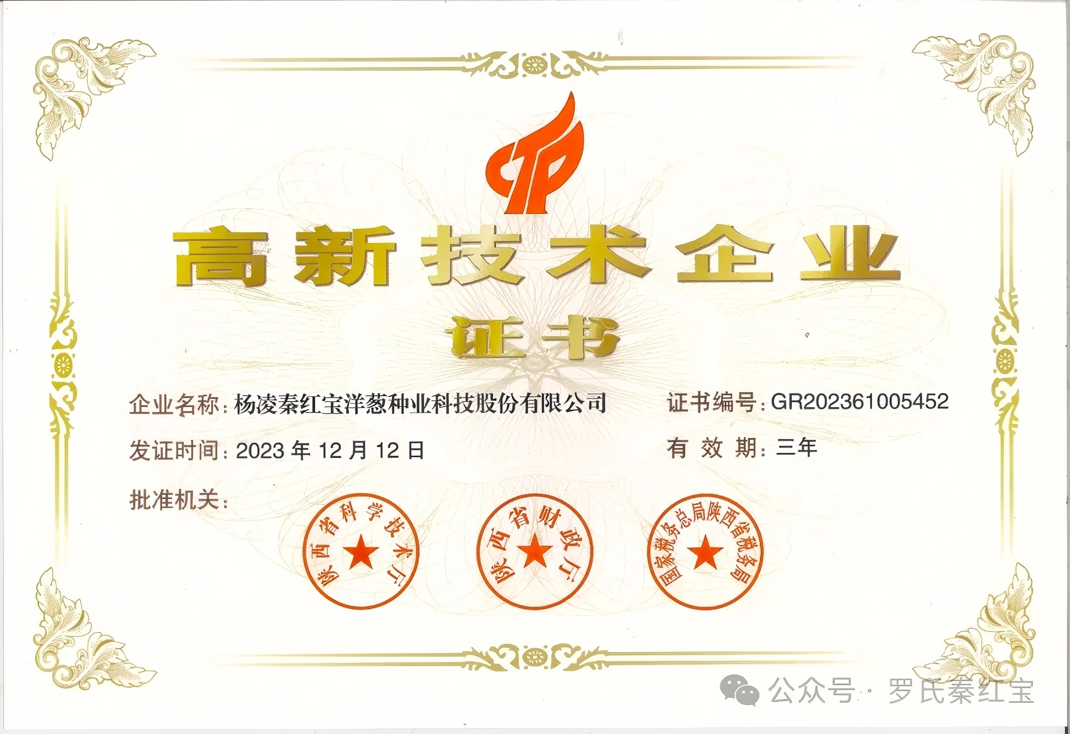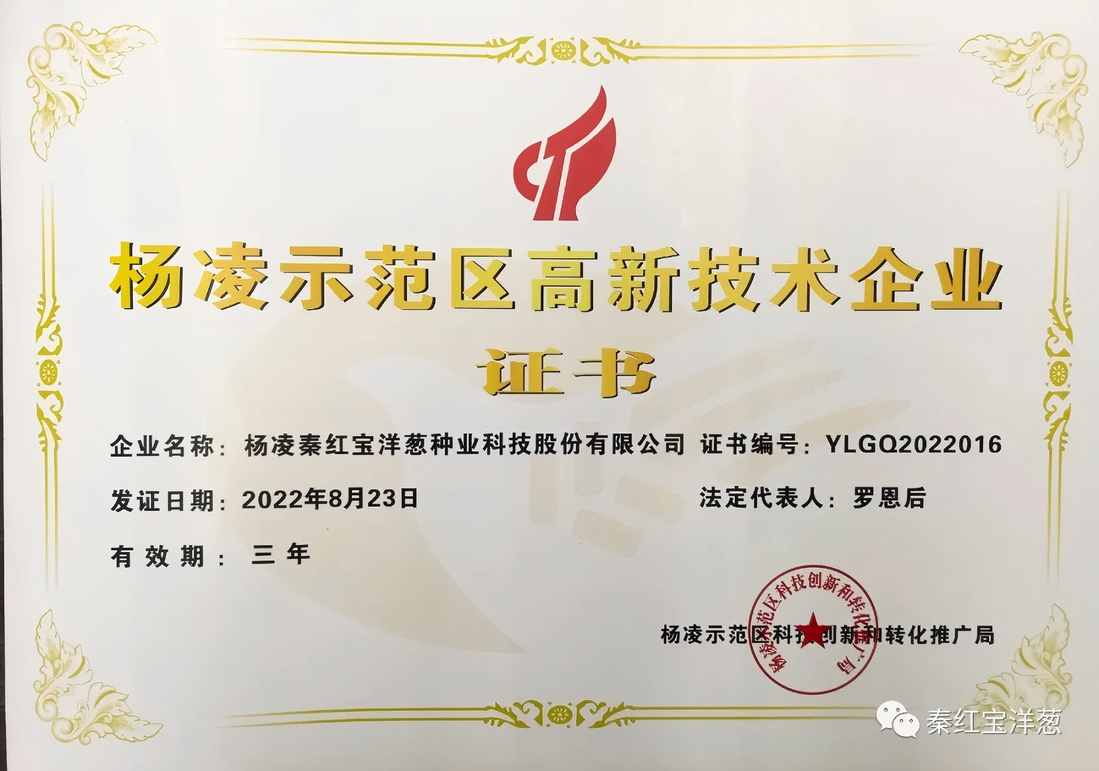 ▲杨凌洋葱研究所 ▲陕西省科技型中小企业
